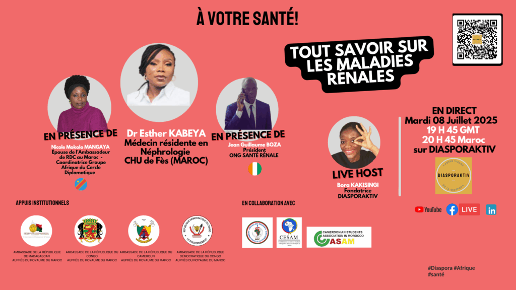 C’est le thème qui sera traitée lors de cette émission, animée par Dr Esther KABEYA, Résidente en Néphrologie au CHU Hassan II de Fès au Maroc.