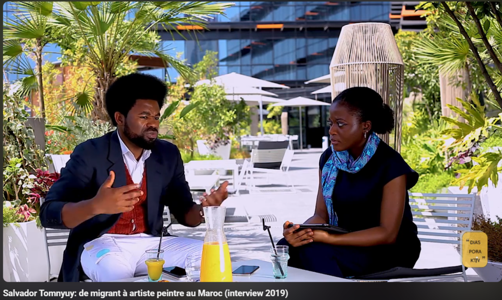 J’y ai surtout retrouvé des visages connus. Des personnes croisées à Casablanca, ailleurs, parfois perdues de vue, parfois fondatrices de trajectoires que Diasporaktiv a documentées dès ses débuts — comme Salvador Tomnyuy, premier membre de la diaspora que j’ai interviewé sur la plateforme, Fihr Kettani de la galerie 38/ Studio des Arts Vivants, ou Olivier Kambiré de la Fondation TGCC…