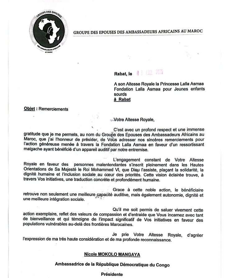 Les deux institutions diasporiques ont adressé des lettres de remerciement à la Fondation Lalla Asmaa, mettant en avant l’impact concret de cette action sur l’intégration sociale et l’autonomie de ce musicien de la diaspora africaine au Maroc.