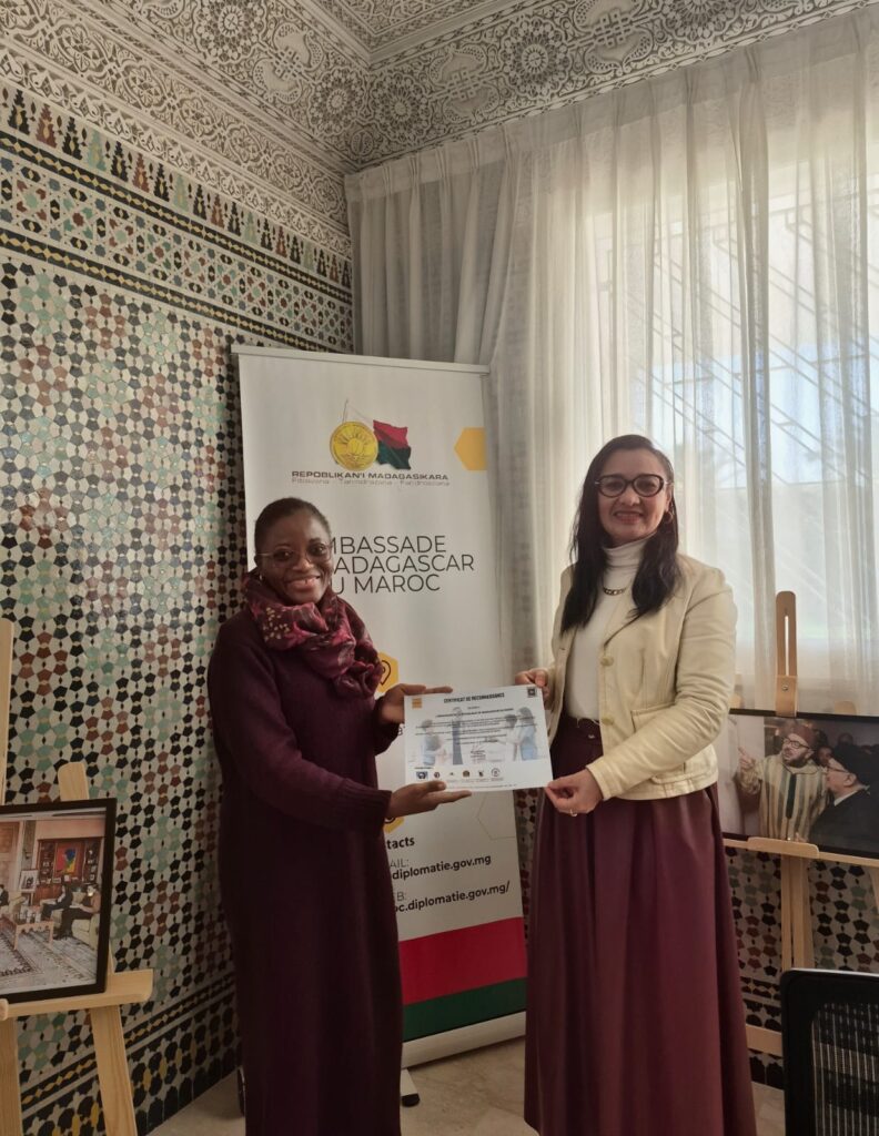 (de g. à dr.) Bora, Fondatrice de DiasporaKtiv, avec Clara Randrianjara, Chargée d’Affaires a.i. à l’Ambassade de Madagascar au Maroc, et Nicole Mokolo Mangaya, Présidente du GEAAM.